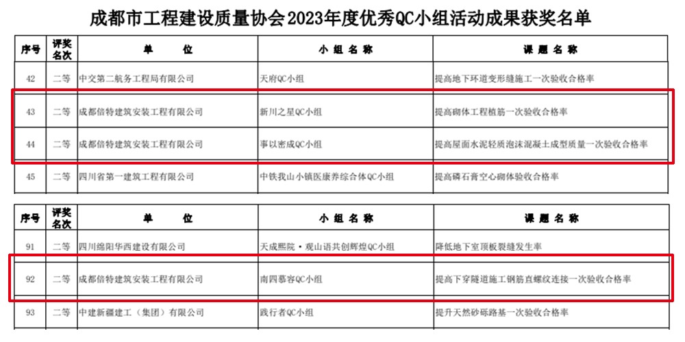 倍特建安論文研究與QC小組活動(dòng)成果斬獲佳績